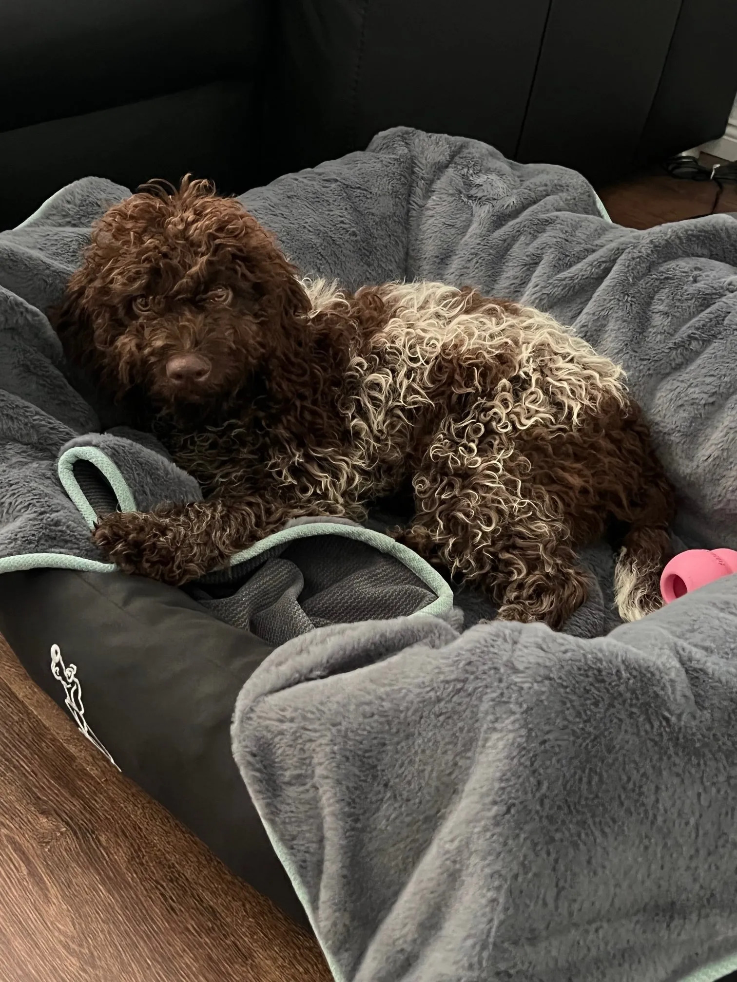 Wir haben wieder Fotos von einer unserer A-Locken erhalten. Azura alias Emmi macht große Sprünge in der Entwicklung, wie man sieht, beginnt sie dem Welpenalter rasant zu entwachsen und aus der kleinen Lockenkugel wird langsam eine Junghündin.